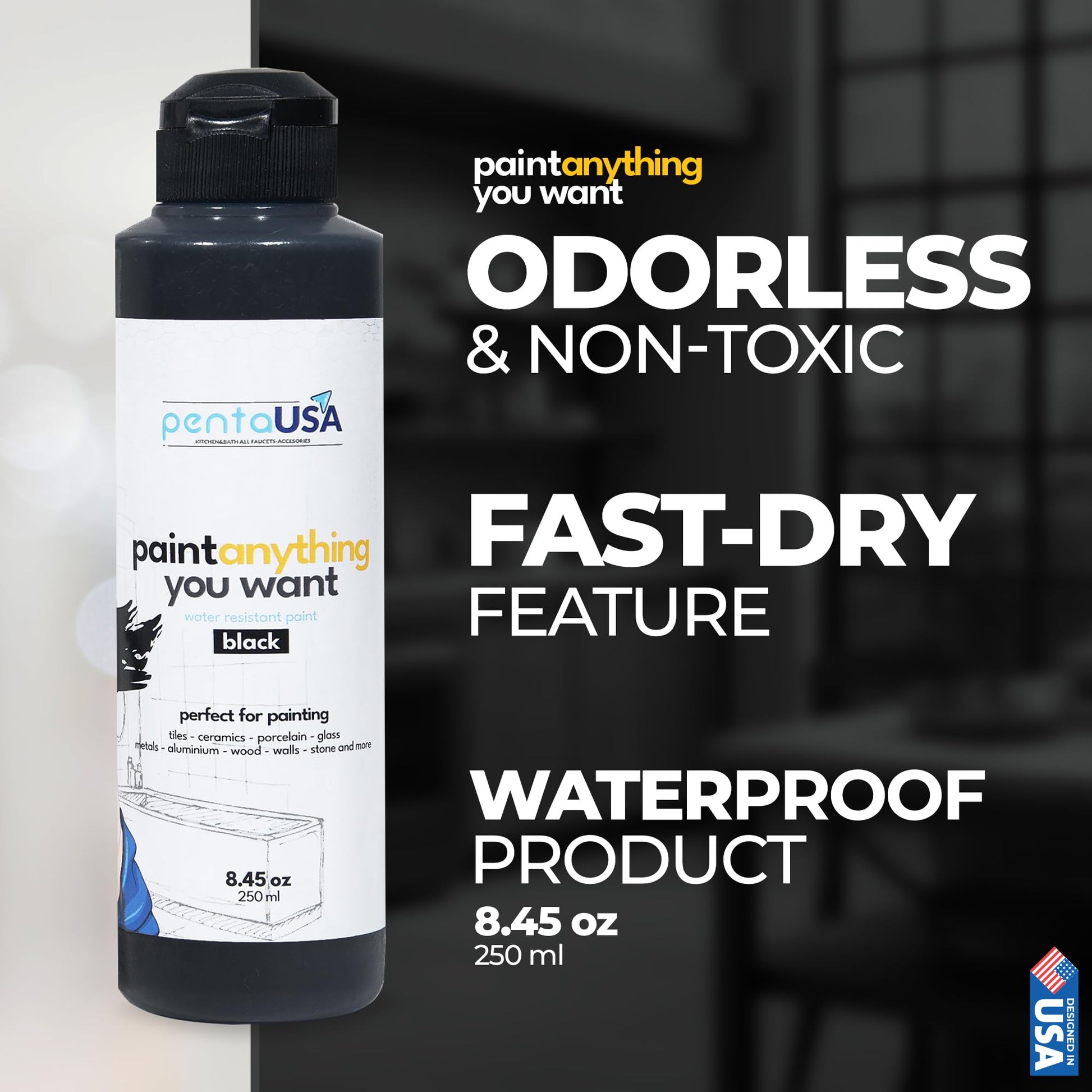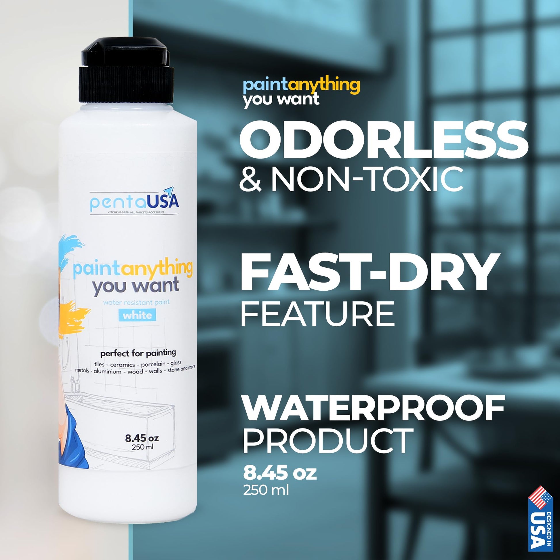 - WET SURFACE PAINT - Our waterproof acrylic paint delivers outstanding durability and water resistance, ensuring long-lasting performance in bathrooms, kitchens, and even outdoor furniture. Ideal for wet surface applications, including bathtubs and tiles