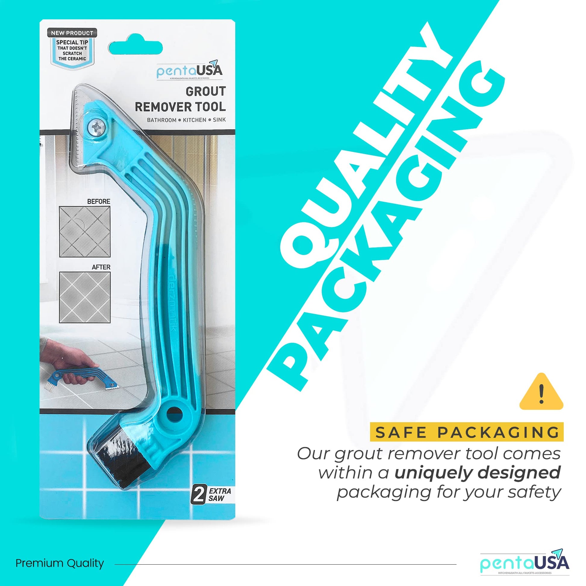 PentaUSA Grout Removal Tool - Caulk Remover & Tile Grout Scraper Saw to Clean Tile Joints (2 Extra Blades)